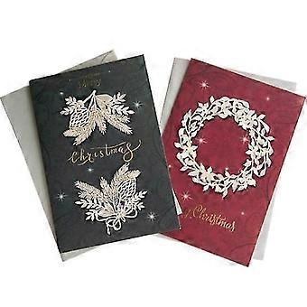 2 joulukorttia, kohokuvioituja joululahjakortteja kirjekuorilla, tyylikkäitä joulukuvakkeita