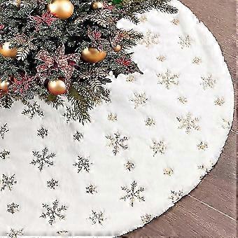 122Cm joulukuusihame tekoturkismatto kultaisella lumihiutalekirjonnalla Pikkujoulut Joulukuusen koristelu