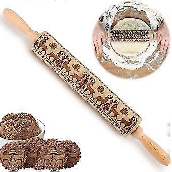 Christmas Elk Print Rolling Pin Wooden Biscuit Engraving Rolling Pin Rolling Pin X2G8