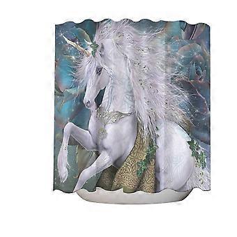 Fantasiataide maaginen valkoinen yksisarvinen suihkuverho Handful Of Prints
