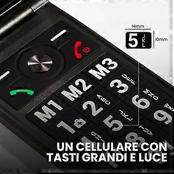 Lukitsematon seniorimatkapuhelin suurilla painikkeilla, SOS-hätäpainikkeella, FM-radiolla ja 1400 mAh:n mustalla akulla