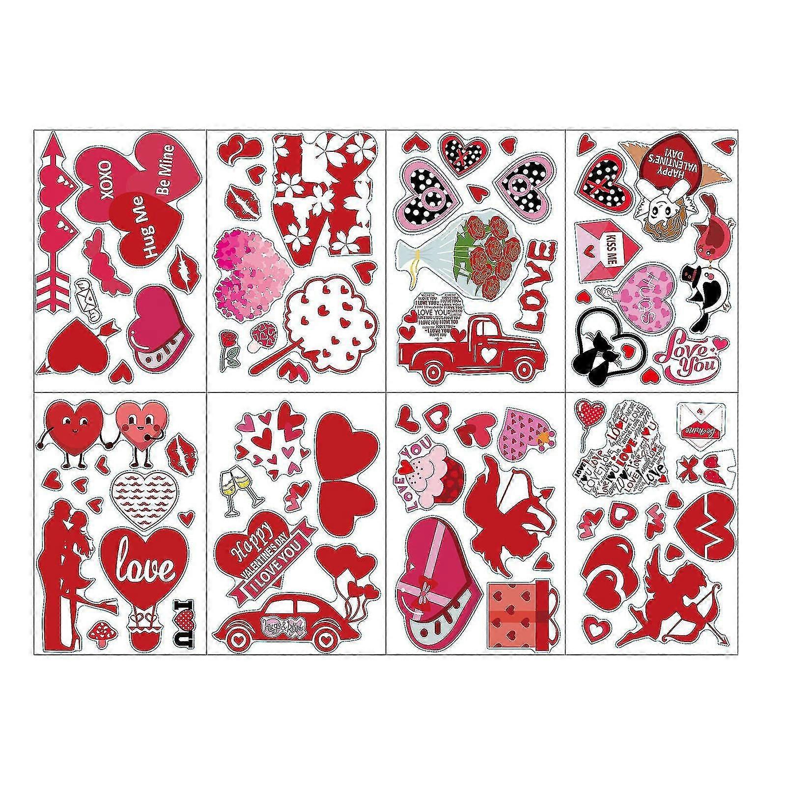 Valentine's Day Window Clings Decorations With Removable Window Sticker Decals For Home DecorationsFeatures: Novelty design: If you are looking for some lovely Valentine's Day party decorations, our lovely Valentine's Day window stickers are perfect for you Unique pendants will make your home simpler and more interesting. Our sticker window designs include popular angels/lovebirds/lips/kiss me/xoxo, etc. Guests and your will love how these look in the house. Let us have a romantic Valentine's Day decoration. No glue, bright colors and double-sided printing: Valentine's Day window decals are thin electrostatic stickers. No glue is needed. Spray a little water on the surface before attaching it to the window. The water will make them stick better. It is double-sided, so you can see the image from both sides of the window. Bright and fresh colors warm the whole house and bring love. Value packaging: You can get 9 sheets of paper, each 20x 30cm. Different sizes allow you to make different combinations. This cute window sticker can cover a huge space with a DIY layout on all windows. You don't need to worry about losing or damaging them. Where to decorate? This detachable heart window sticker is pre-cut, ready to use, easy to use and peel, leaving no residue. It is very suitable for use as photo props for Valentine's Day, weddings or any other events that require a romantic atmosphere. You can stick window on any smooth surface, such as glass doors, shop windows, kitchens, glasses, home appliances, conditioners, cafes, restaurants, supermarkets, clothing stores.Product Package include:1x Valentine's Day Window Sticker