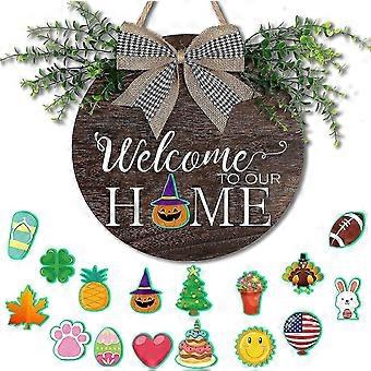 Seasonal Welcome Sign Front Door Porch Decor, Interchangeable Rustic Wood Wall Hanging Porch Decorations For Halloween, Christmas, Farmhouse Outdoor D