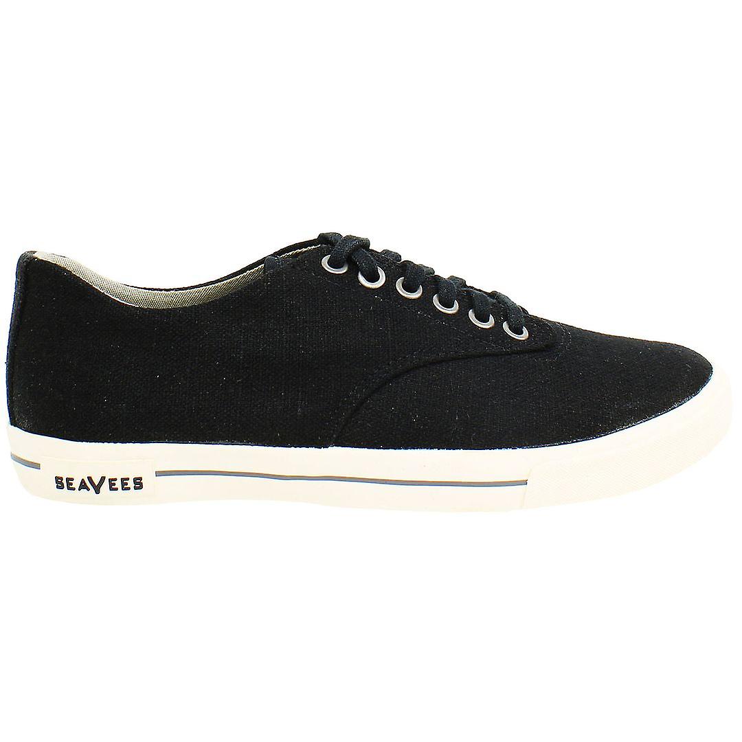 Seavees Hermosa Plimsoll Black Linen Lace-Up Black Synthetic Mens Trainers