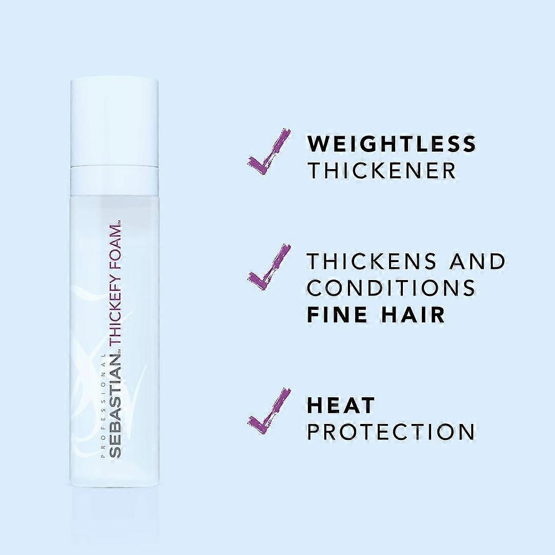 Sebastian Thickefy Foam's liquid-to-foam in one-pump formula thickens and conditions, weightlessly holding finer hair in place. Benefits: Volumizing hair mousse Heat protection Weightless hold Ideal for fine hair Sebastian Thickefy Foam is a versatile styling product designed to add volume and thickness to fine hair. Its unique liquid-to-foam formula transforms into a lightweight mousse that provides conditioning and hold without weighing hair down. This innovative product offers heat protection, making it ideal for use with styling tools. The weightless hold ensures that hair maintains its natural movement while appearing fuller and more voluminous. Ingredients Water/Eau, PVP, Phenoxythanol, Cocamidopropyl Hydroxysultaine, Tocopheryl Acetate, Methylparaben, PEG-40 Hydrogenated Castor Oil, Disodium EDTA, Fragrance/Parfum, Citric Acid, Cetrimonium Chloride. Suggested Use Apply to damp hair, distributing foam from roots to ends. Blow dry for weightless body. For added texture and hold, scrunch into dry hair. Style as desired for ultimate thickness and volume.