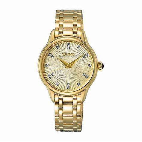Seiko Srz552p1 Women's Quartz Watch, Gold-tone Case, Diamond-set Dial, Gold Stainless Steel Bracelet