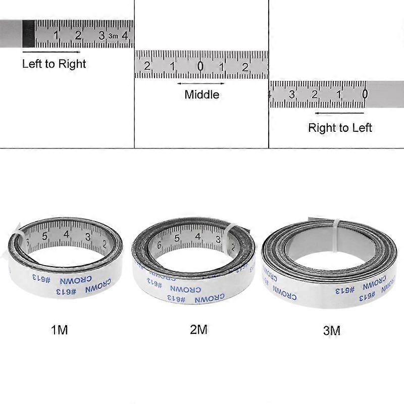 Self-adhesive measuring tape with adhesive backing, left to right for reading, right to left, center on both sides, stainless steel