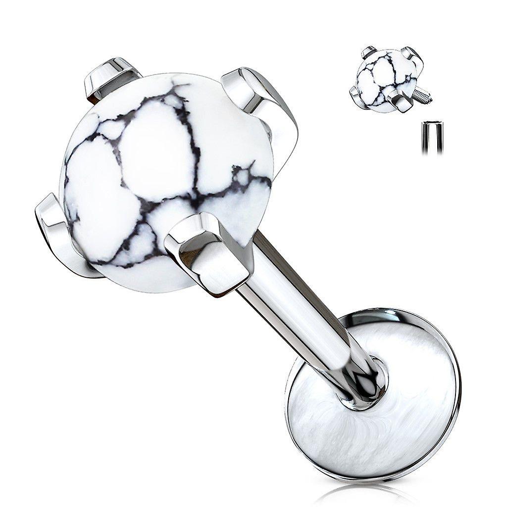 Semi precious stone prong set internally threaded labret, cartilage stud 16g