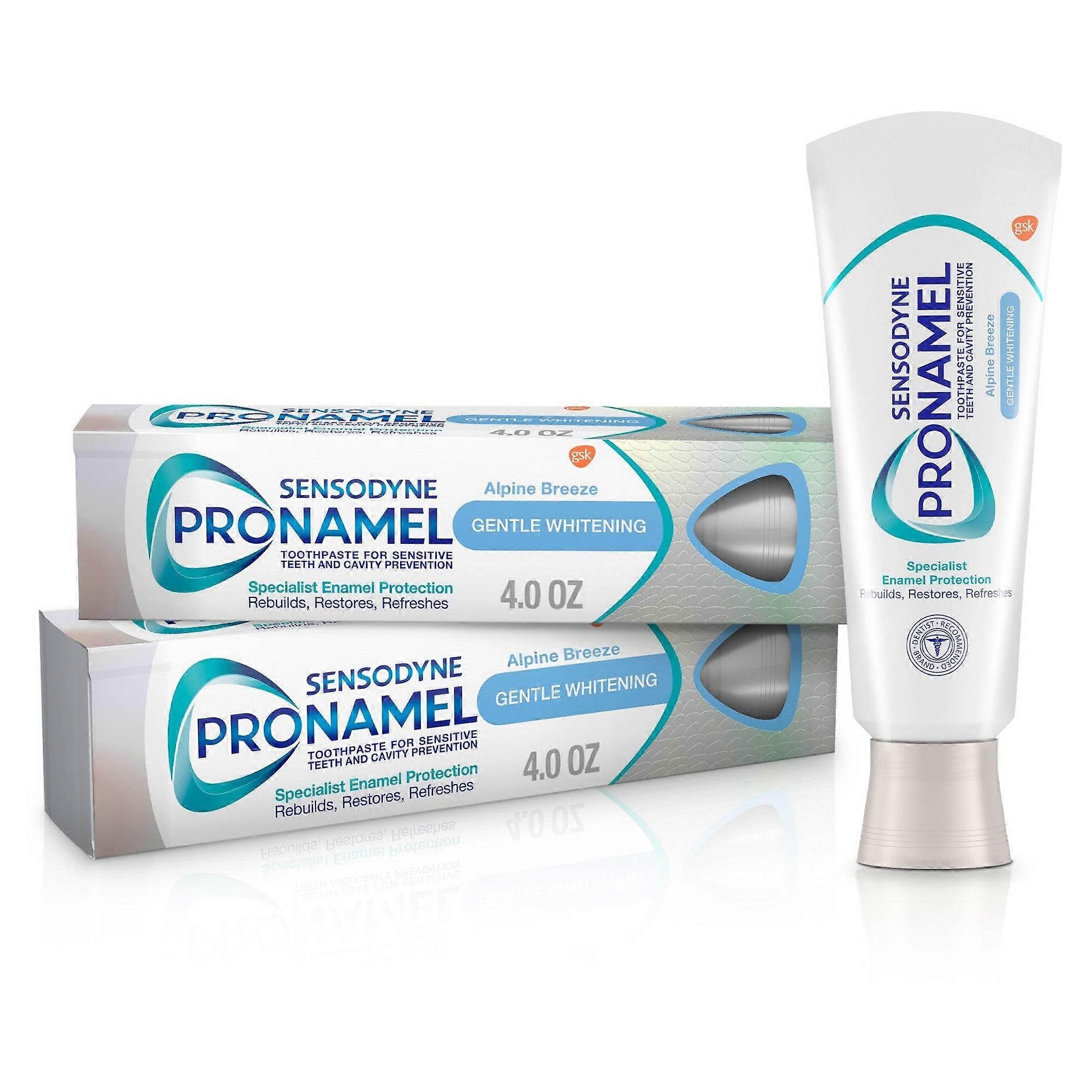 Sensodyne Pronamel Gentle Whitening Enamel Toothpaste for Sensitive Teeth is a sensitive whitening toothpaste that effectively cleans and polishes away stains for fresh breath and healthy teeth. Strengthening enamel, this cavity protection toothpaste remineralizes your teeth, protecting you from acid erosion. This Sensodyne Pronamel toothpaste 2 pack protects you from pain triggers as it gently restores the natural whiteness of your teeth. For best results, brush for two minutes, twice daily. Build a stronger foundation with Pronamel, so your can teeth look and feel their best. UPC: 310158830573 Weight: 0.88 lbs