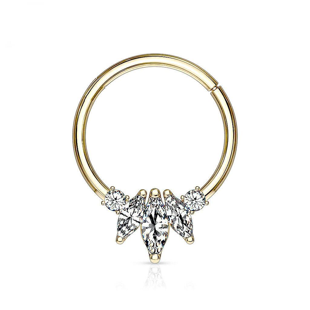 Septum hinged hoop ring with three marquise cz design 14kt gold