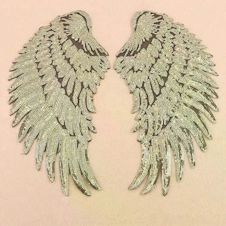 Sequin Feather Wing Patch-DIY Clothing Accessory,20.5x10cm,Gold