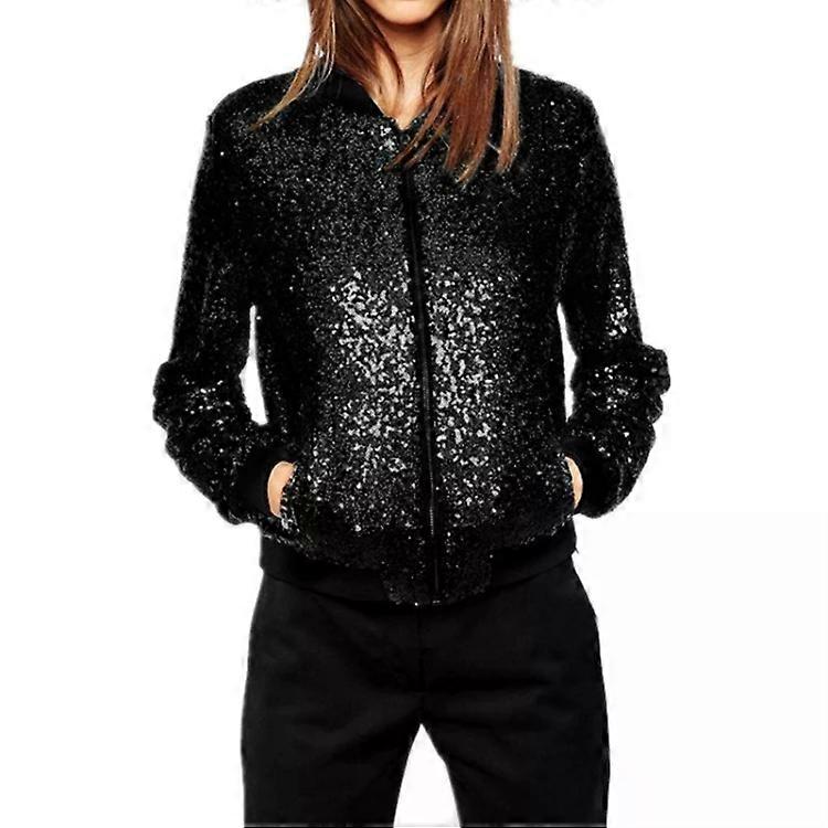 Sequin Jacket for Women-Casual Short Coat,Black,Size S-Black,S