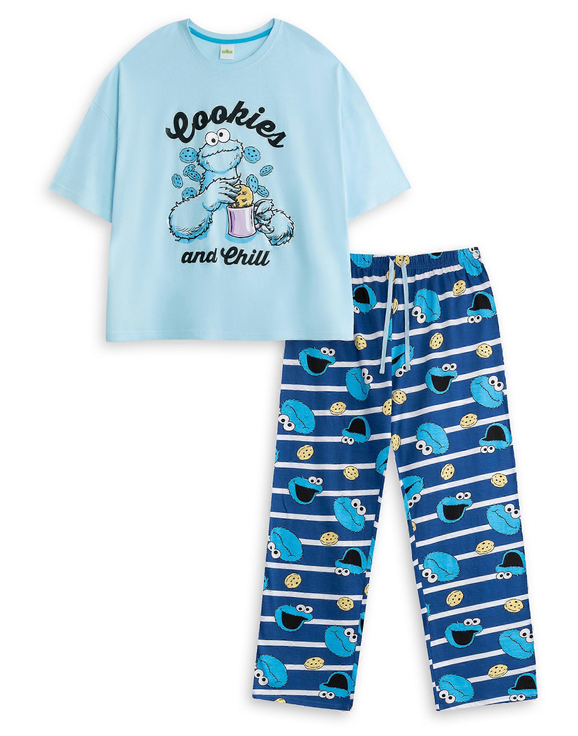 Sesame Street Womens Short Sleeve Long Leg Pyjama Set Blue Cookie Monster