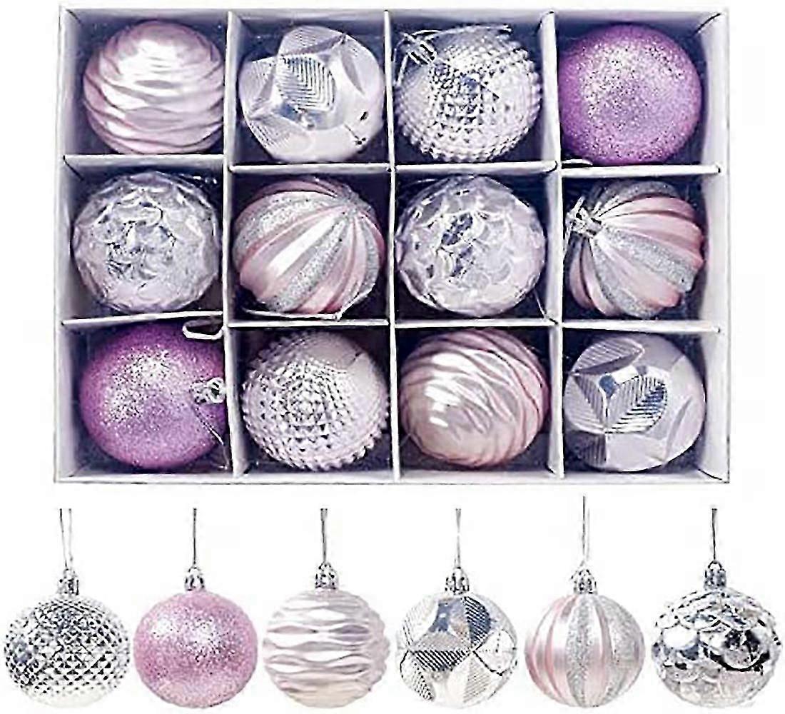 Set of 12 Elegant Christmas Baubles Diameter 6 cm Christmas Tree Baubles Christmas Decoration Christmas Tree Decorations (Pink)