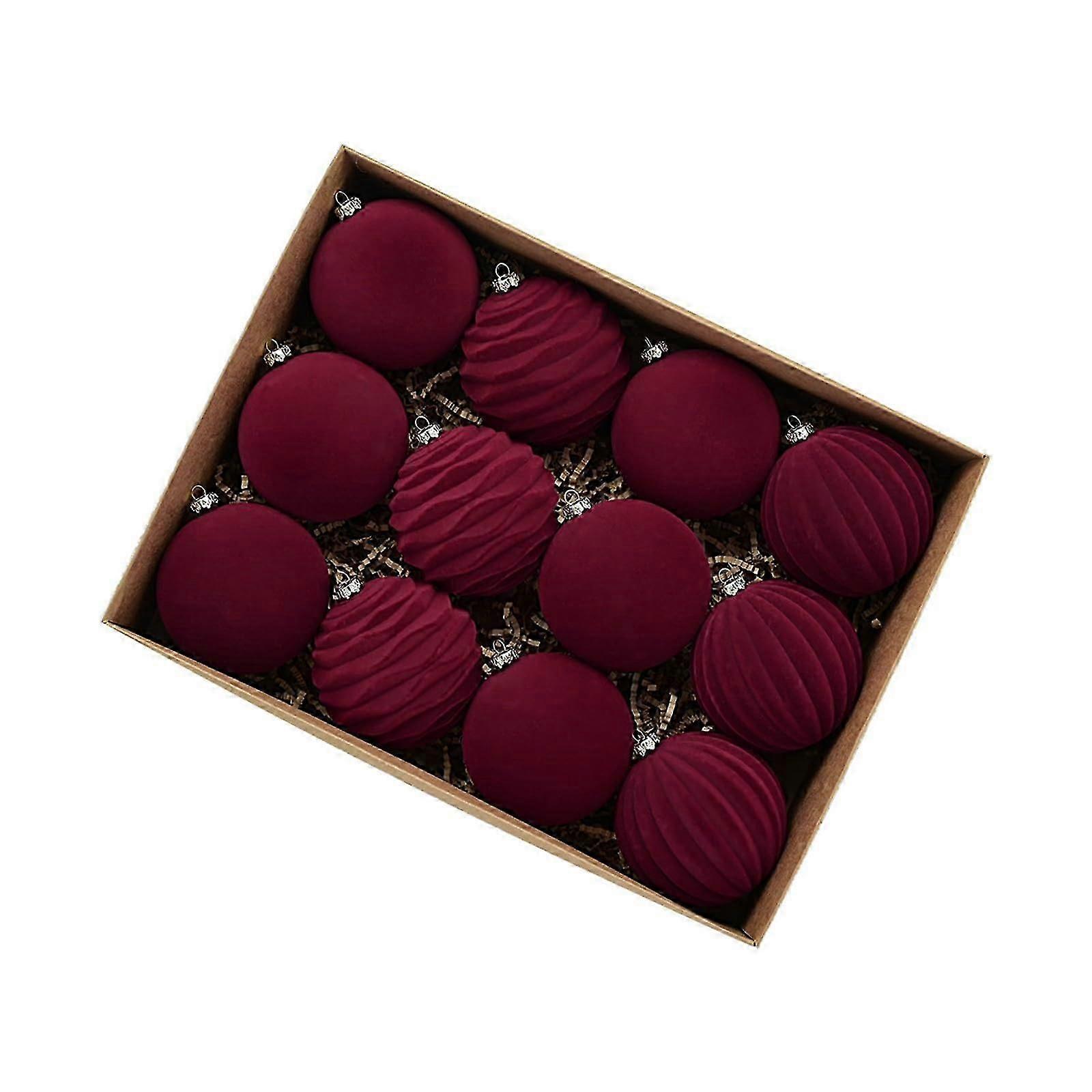 Set of 12 Velvet Christmas Baubles Red and Hot Pink Plastic for Tree Decorations, Einheitsgre for Holiday Decor