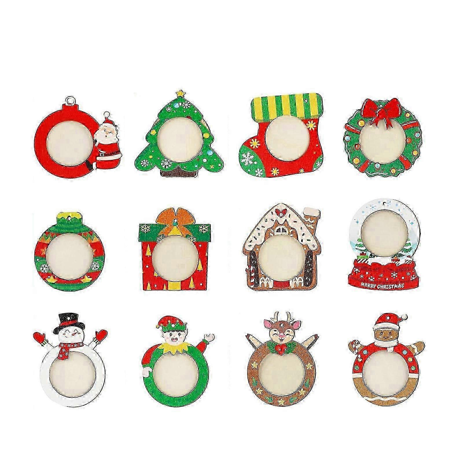 Set of 12 Wooden Christmas Tree Baubles with Photo Frames for Holiday Party Decorations