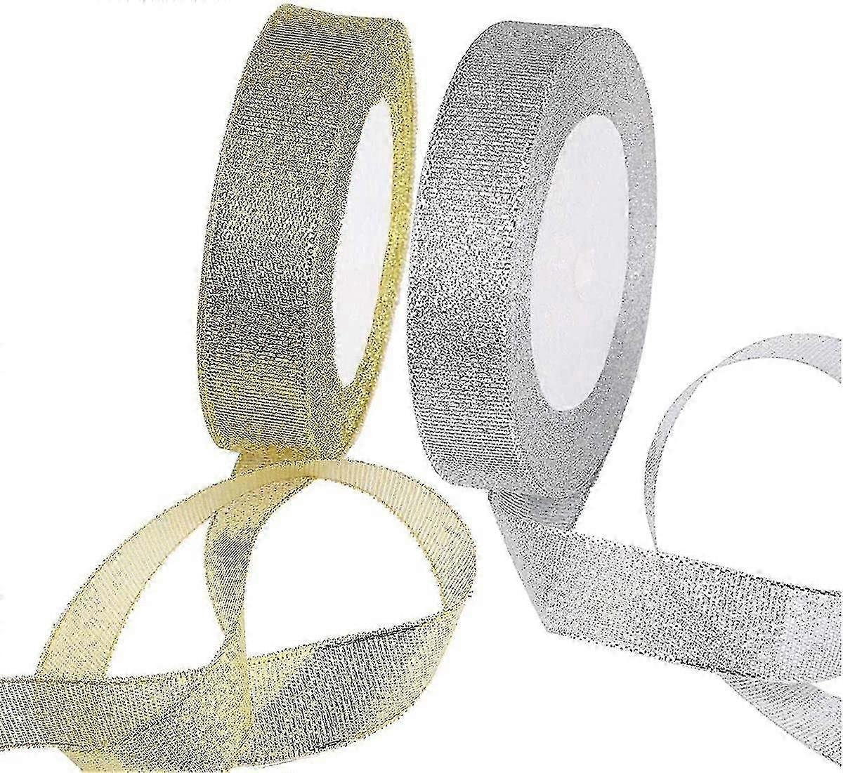 set of 2 golden and silver organza ribbons for christmas or thanksgiving