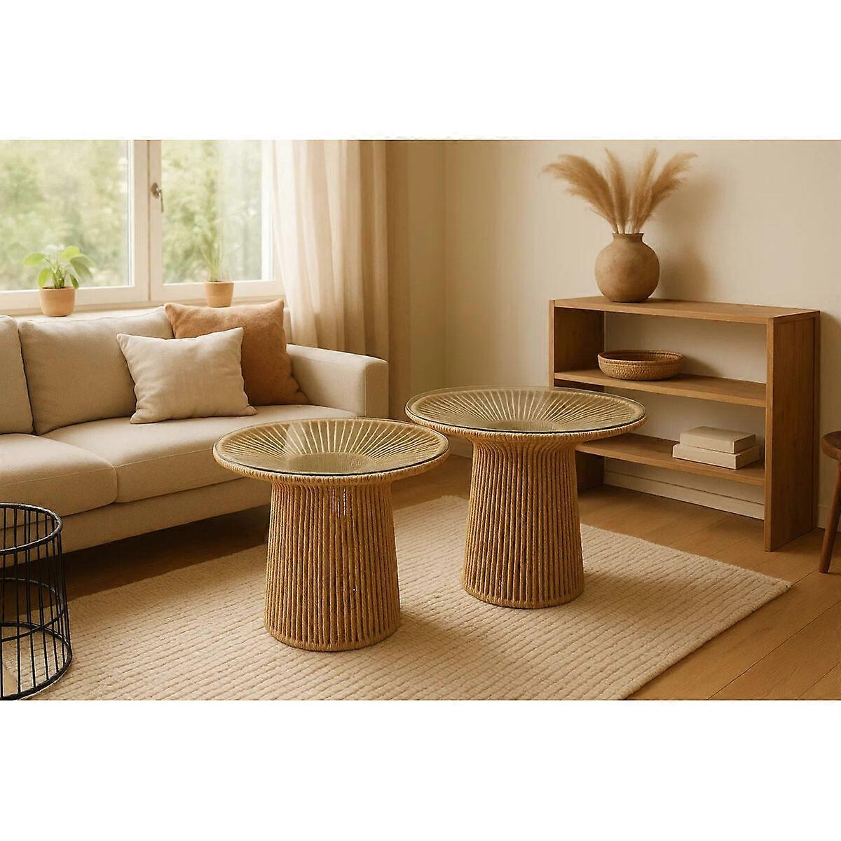 Satz mit 2 Tischen Home ESPRIT Hellbraun 55 x 55 x 46 cm