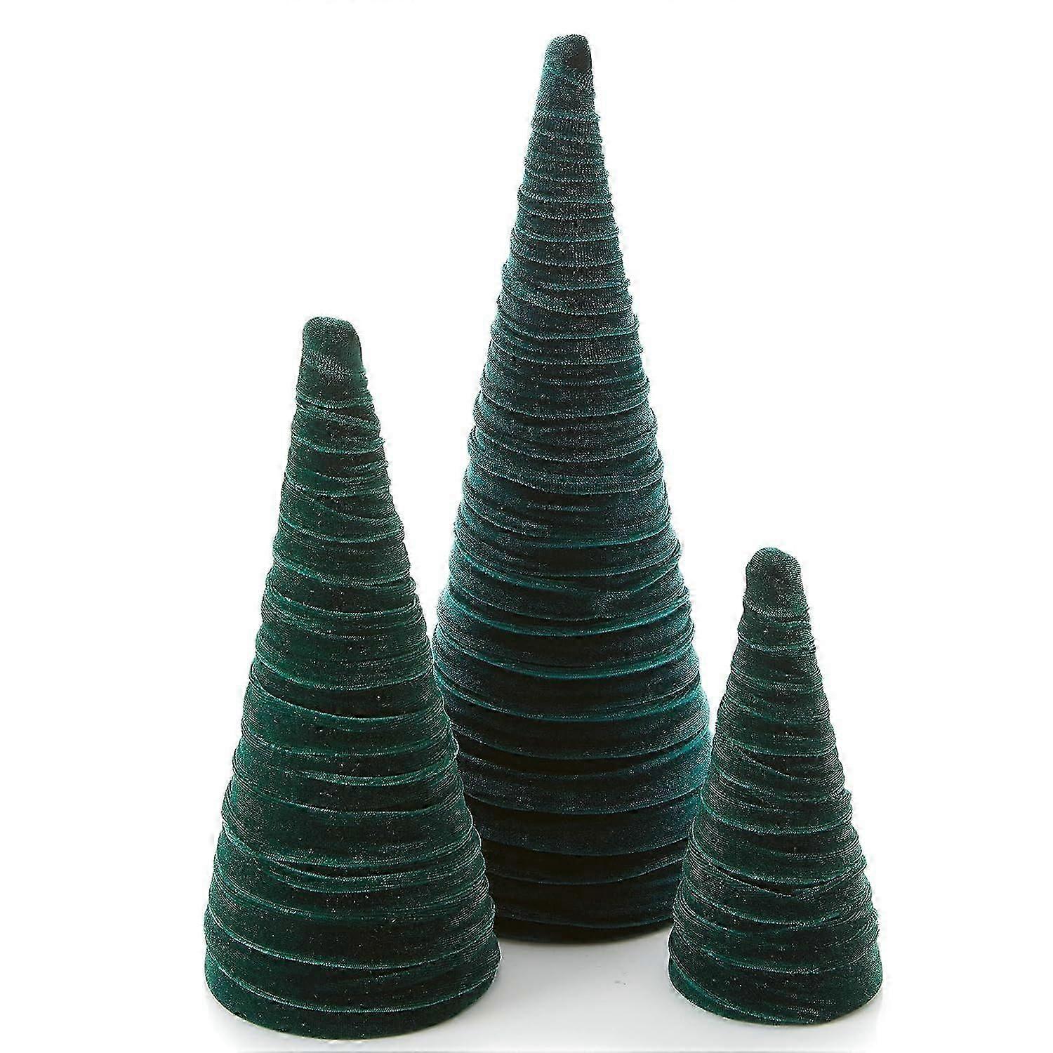 Set of 3 Velvet Trees, Modern Christmas Decor, Holiday Entryway, Rustic Winter Home, Farmhouse Home Decorations, Tree Figurines (Emerald)