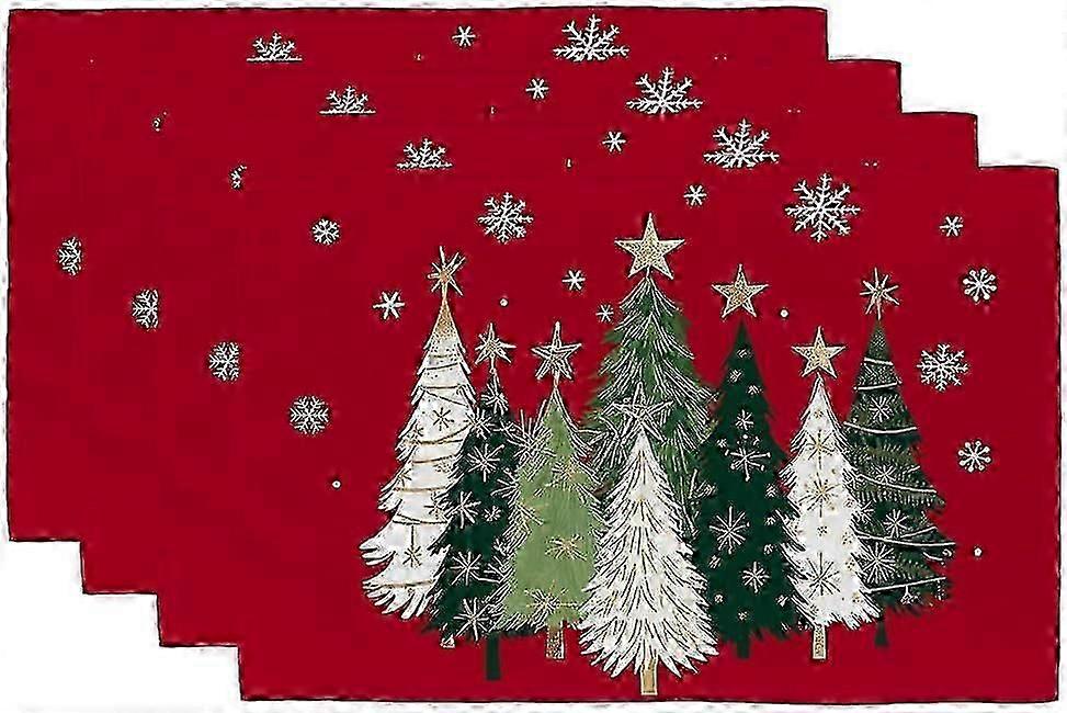 Set of 4 Christmas Placemats 12x18 Inch , Xmas Trees Snowflakes Winter Seasonal Holiday Farmhouse Kitchen Dining Table Decoration for Indoor Outdoor