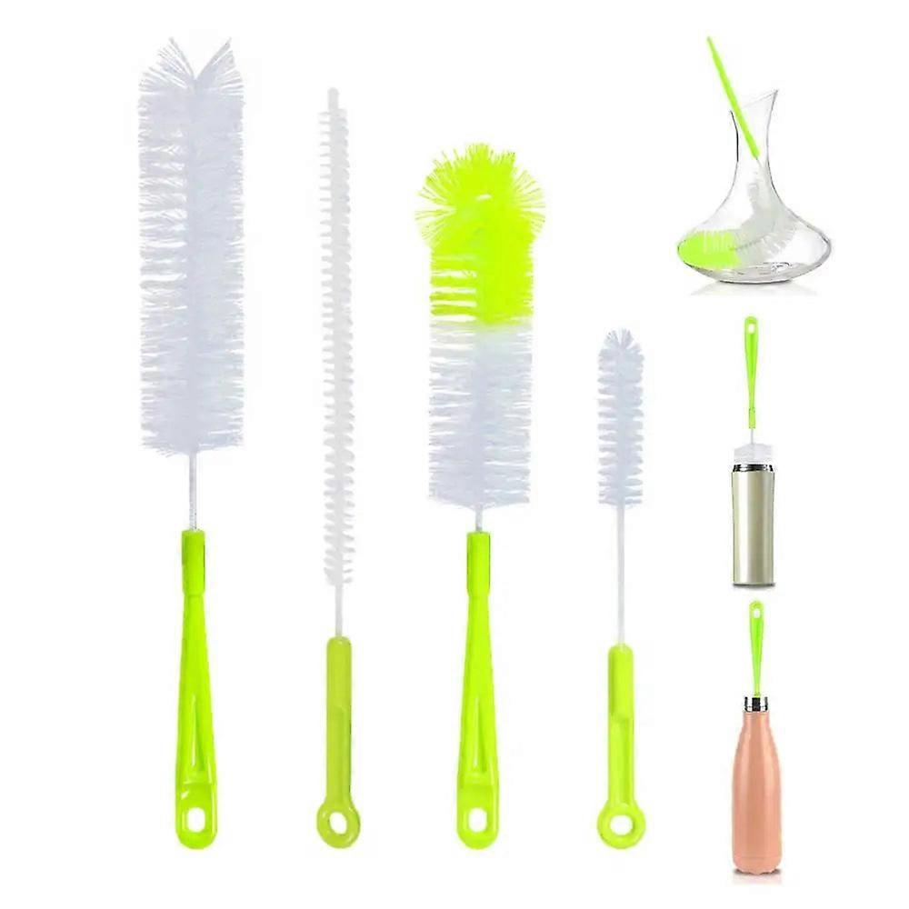 Set Of 4 Long Handle Bottle Cleaning Brushes - Flexible Soft Scrub For Water