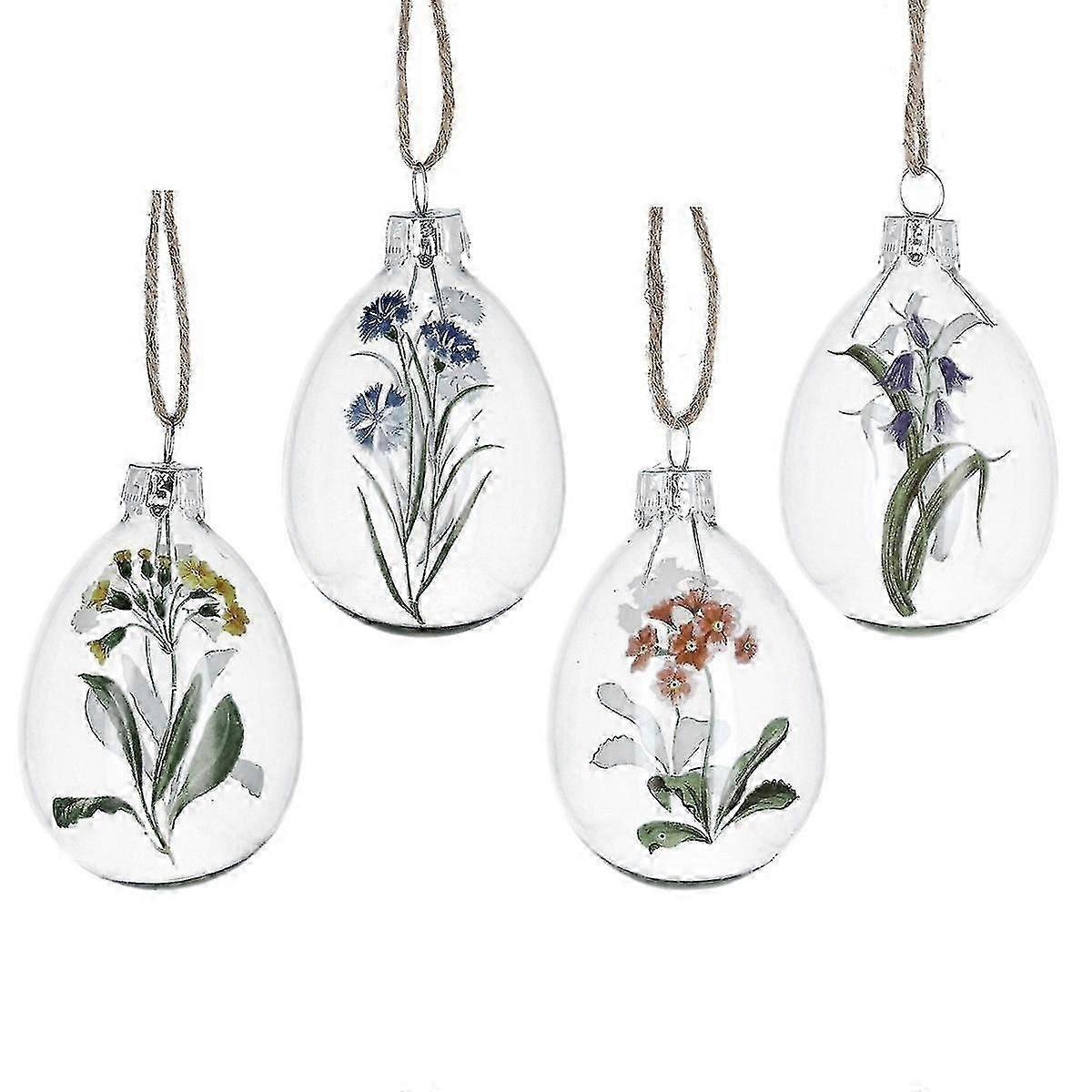 Set of 4 Meadow Flower Glass Easter Egg Decorations