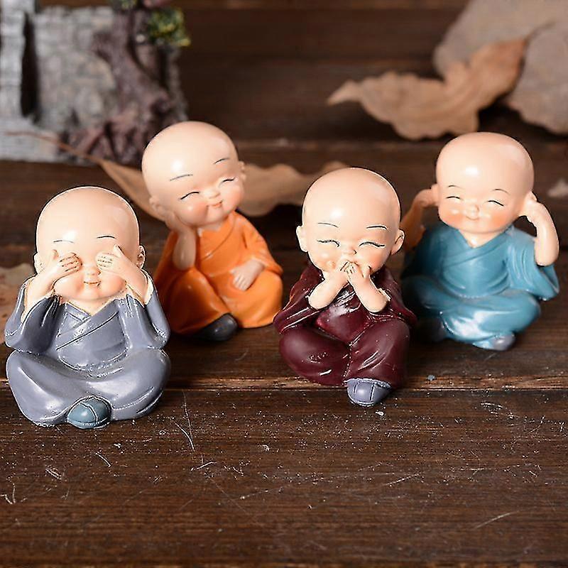 Set of 4 Pieces Cute Monks Figurines Small, Resin Statue, Crafts Creative Ornament for Home, Office, Car Decoration Decor