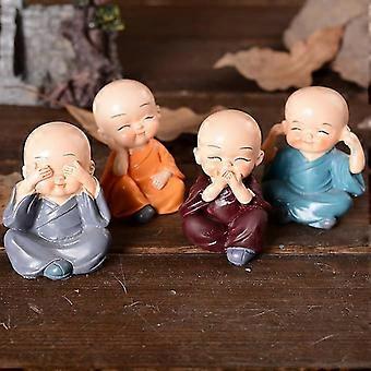 Set of 4 Pieces Cute Monks Figurines Small, Resin Statue, Crafts Creative Ornament for Home, Office, Car Decoration Decor