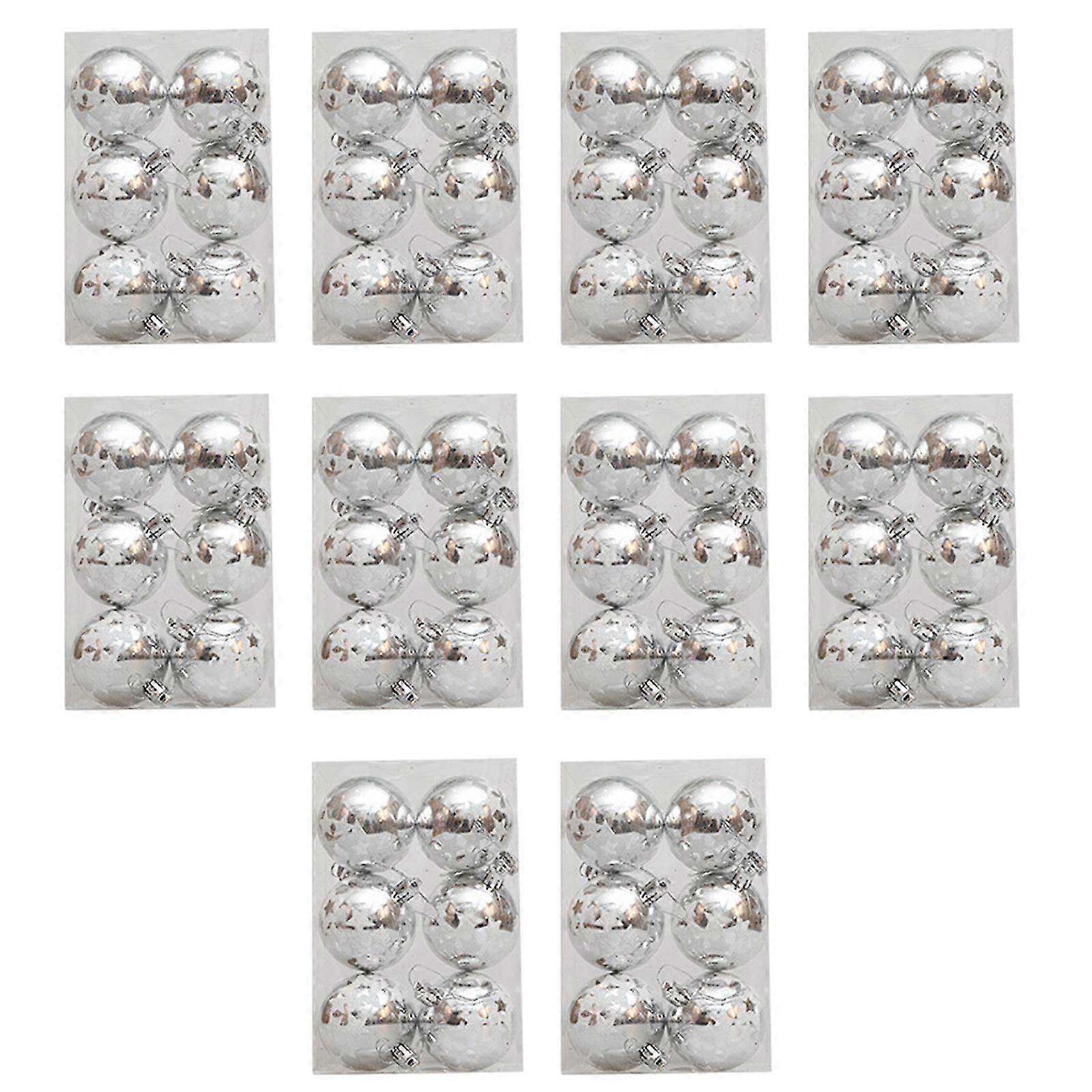 Set of 4Boxes Decorative Christmas Baubles Christmas Tree Hanging Decoration Stylish Sphere Pendant Ornament Silver