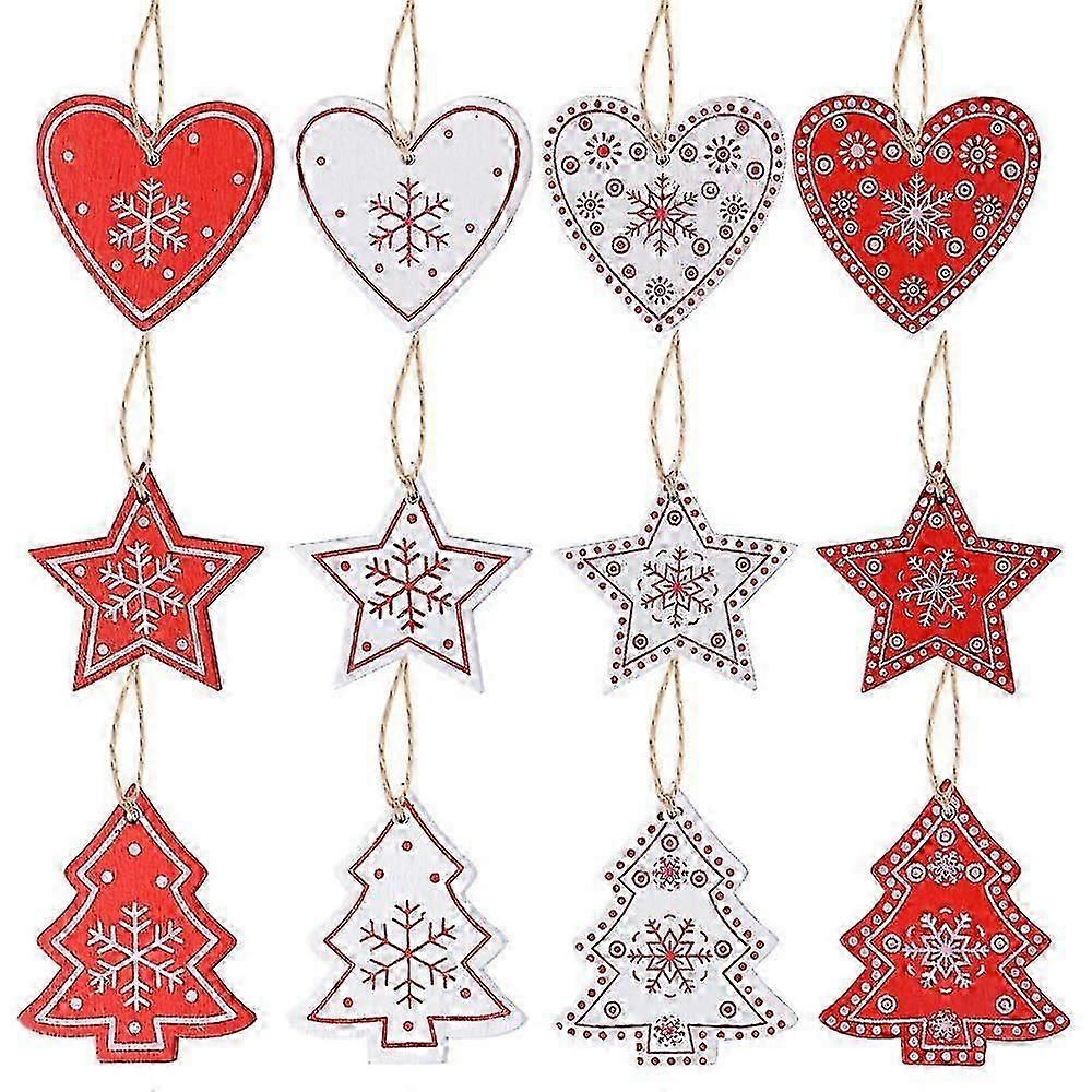 Set Of 50 Christmas Wooden Embellishments With Hole Christmas Tree Ornament Christmas Accessories Decoration Christmas Tree Fir (12 Models)