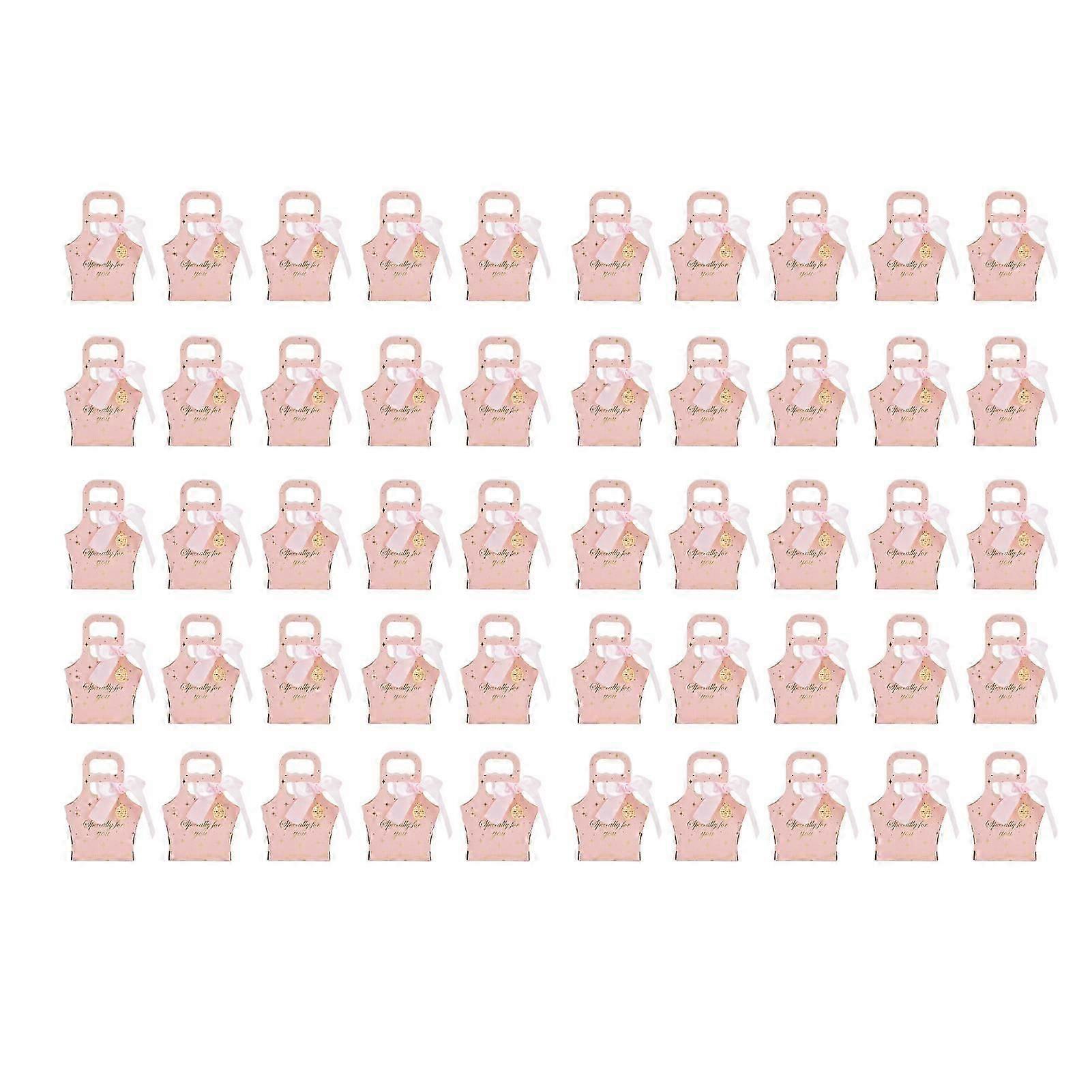 Set of 50 innovative paper candy bags with ribbons for Christmas, birthday, wedding parties, pink with light pink ribbon