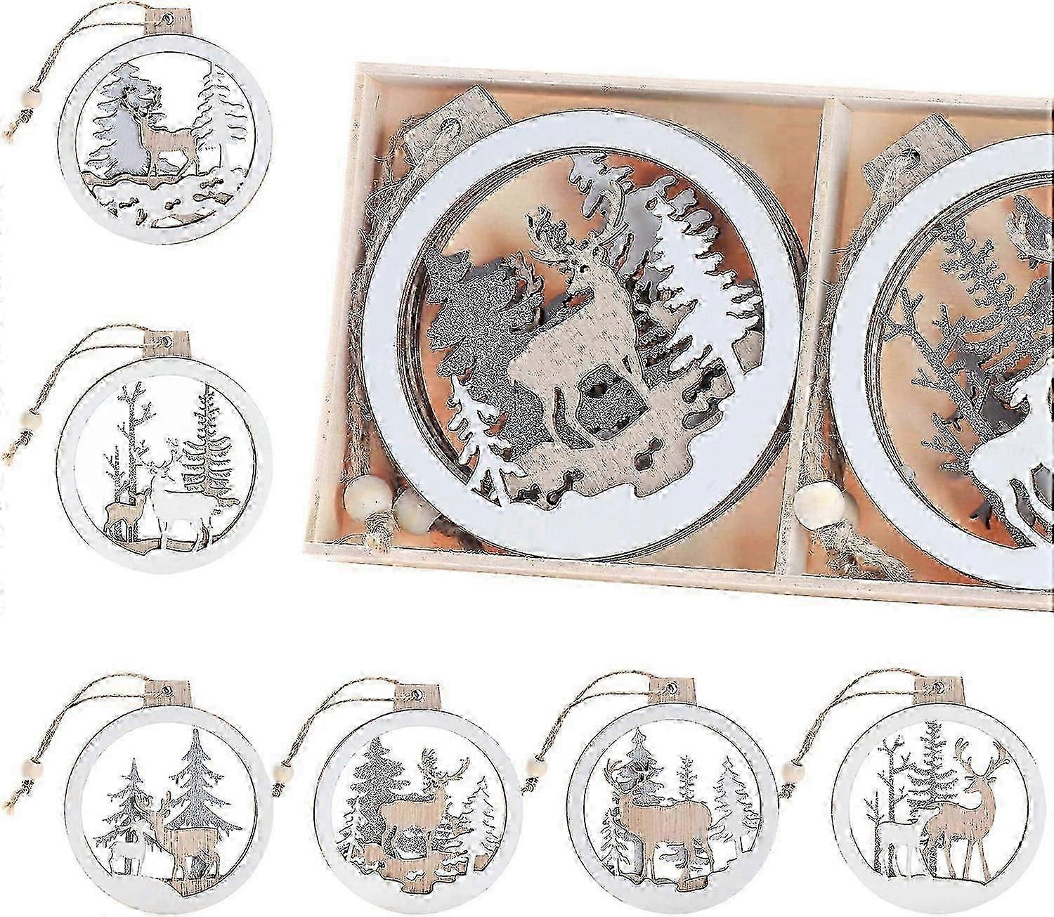 Set of 6 Christmas Wooden Ornaments, Wooden Baubles Reindeer Hanging Xmas Pendant Ornaments for Christmas Tree Decorations DIY