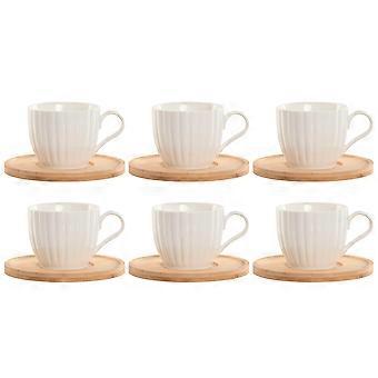 Set of 6 Cups with Plate Home ESPRIT White Natural Bamboo Porcelain 220 ml