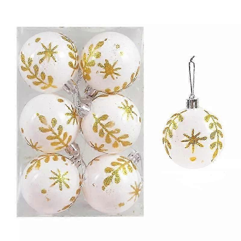 Set of 6 Elegant Christmas Baubles Diameter 6 cm Christmas Tree Baubles Christmas Decoration Christmas Tree Decoration (White)
