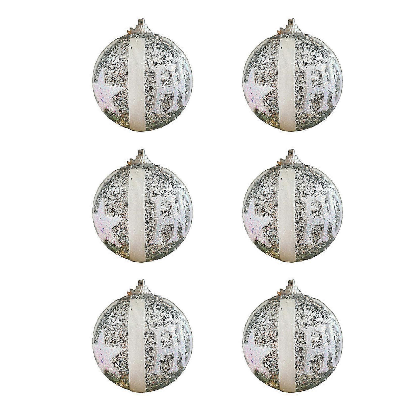 Set of 6 Festival Ornament Christmas Baubles Shimmering Tree Decorations for Home and Office Stylish Hanging Pendant Silver