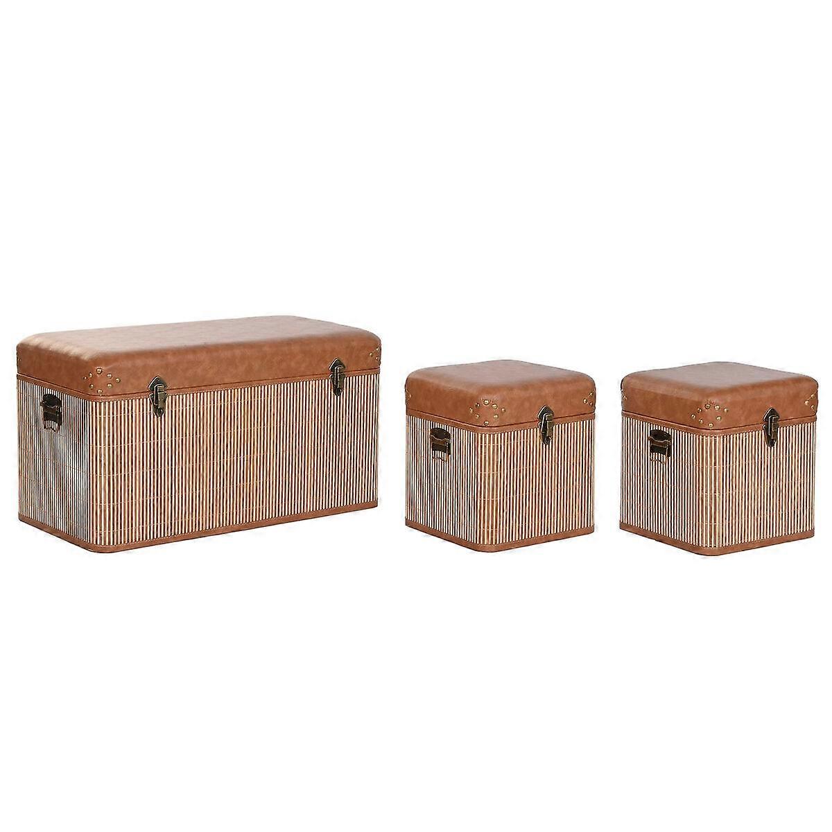 Set of Chests Home ESPRIT Brown Natural Polyurethane Bamboo Oriental 80 x 40 x 44 cm 80 x 40 x 45 cm (3 Units)