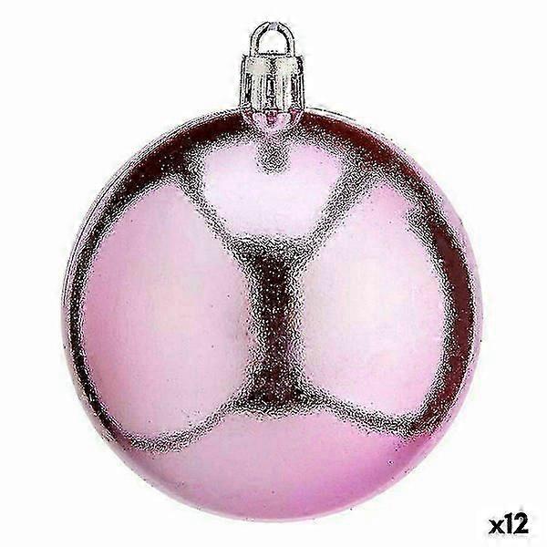 Set of pink plastic Christmas baubles; 7cm (12 pieces)