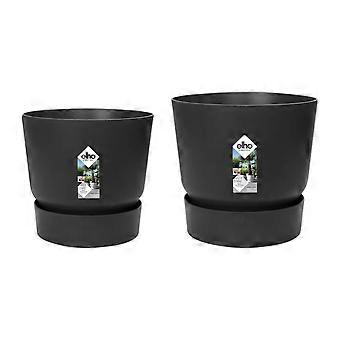 Set of pots Elho Black Plastic Circular 2 Pieces