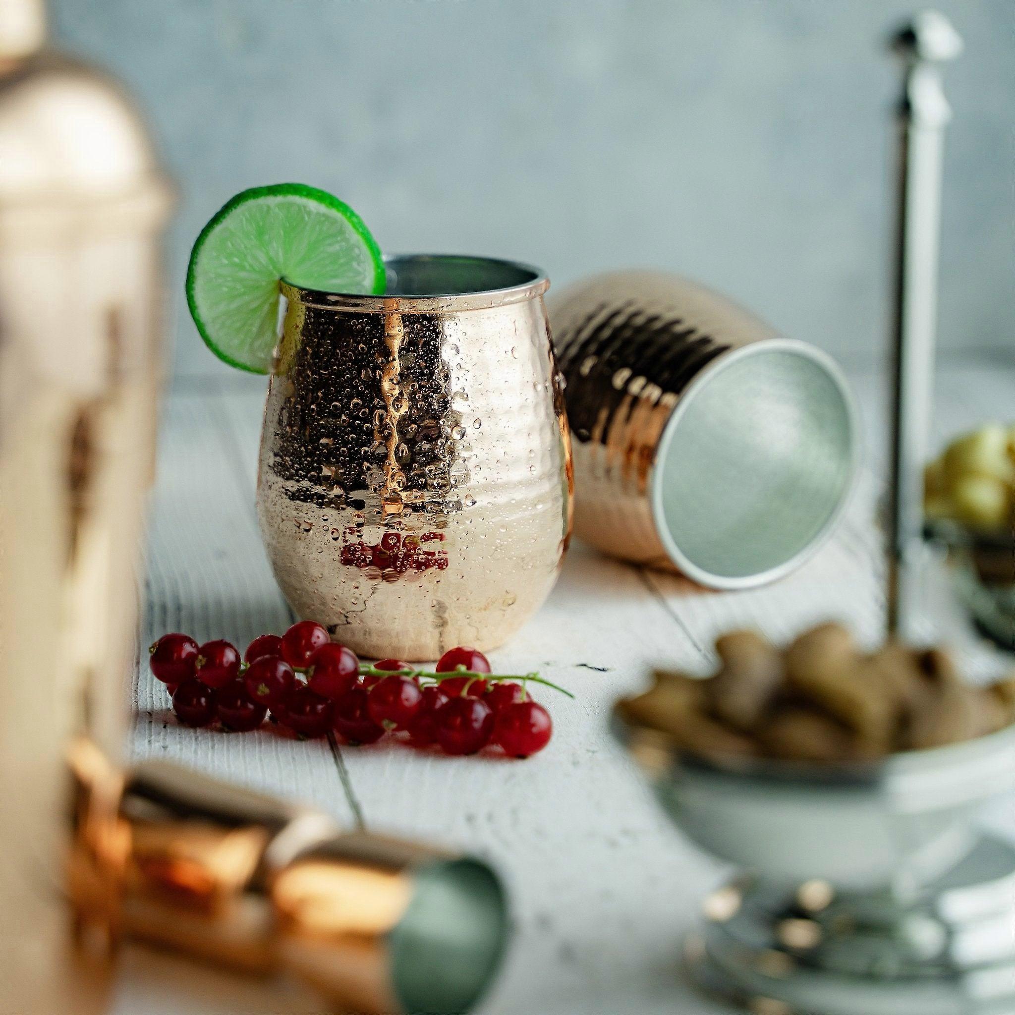 Set Of Two Hand-hammered Copper Glasses – 450ml Stemless Drinkware