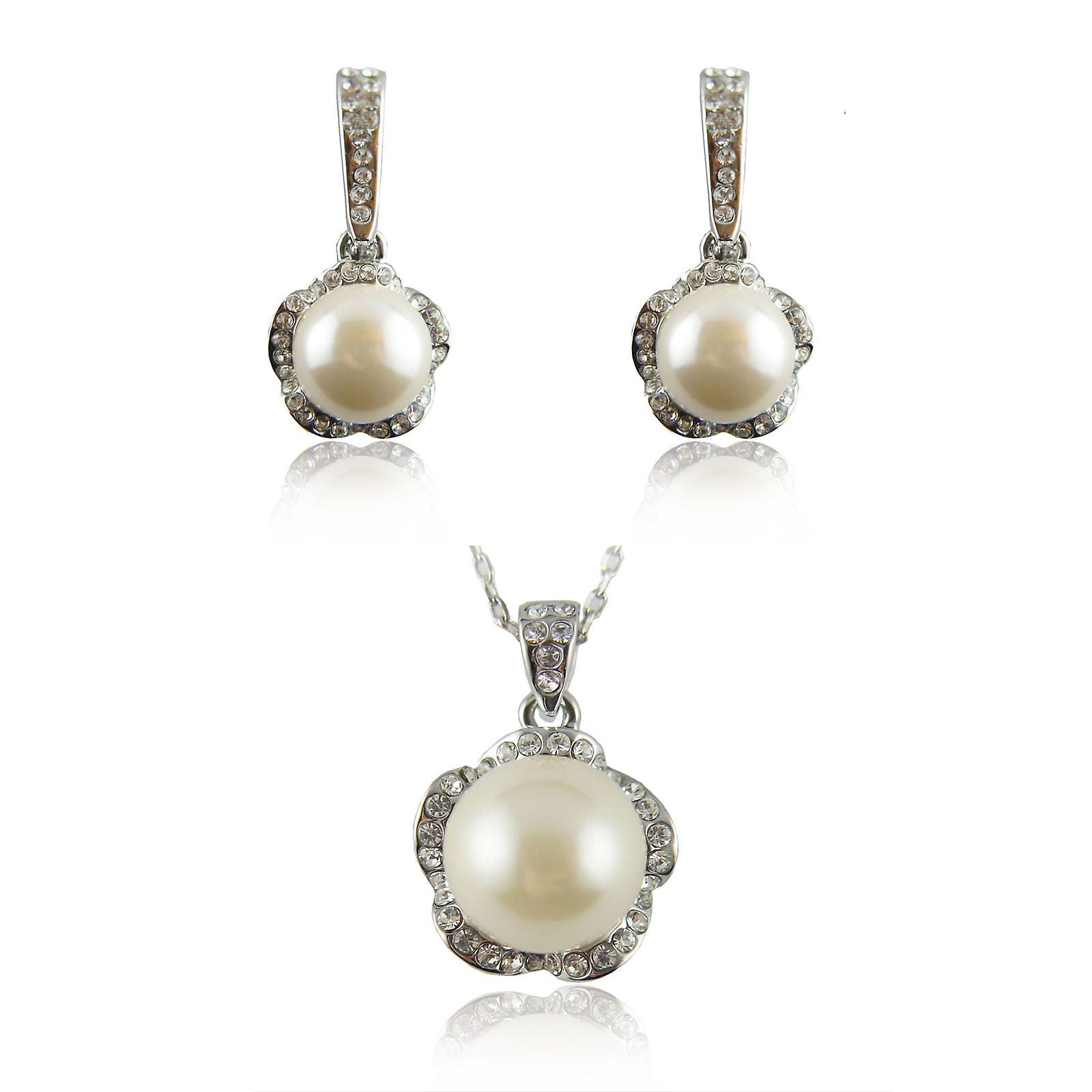 Sets 18k White Gold Gf Pearls Earrings Pendant Necklace With Crystals