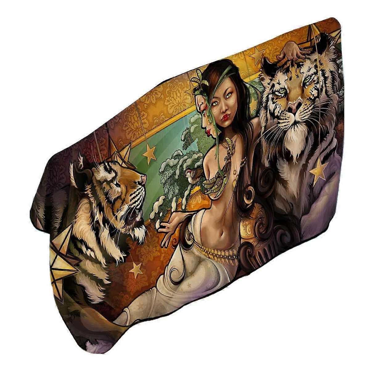 Sexy Princess Woman and her Tigers Microfiber Beach Towel