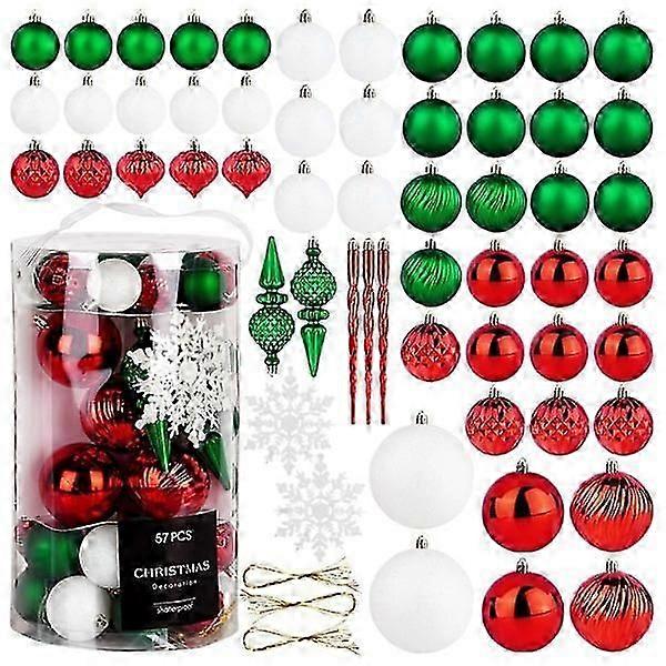Shatterproof Christmas tree baubles red green white 57pcs.