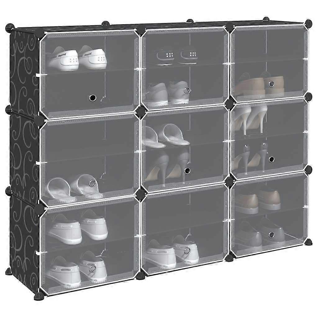Regalsystem mit 9 Würfeln und Türen Schwarz PP