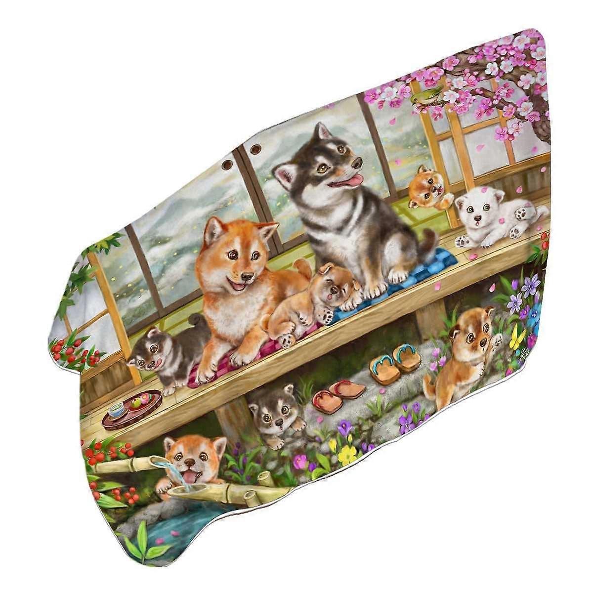 Shiba Inu Dogs and Puppies in Japanese Garden Microfiber Beach Towel