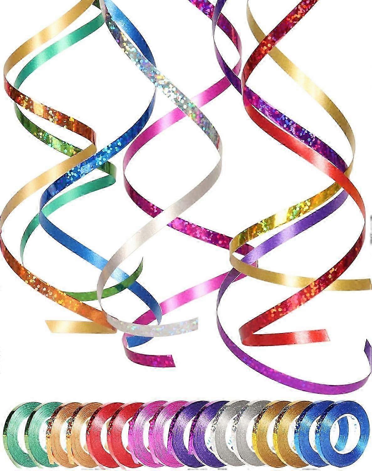 Shiny Curling Ribbon Set,16 Rolls 5mm Metallic Multicolor Crimped Balloon String Gift Wrapping Ribbon Bow Ribbon Christmas Ribbon for Gift -Yx
