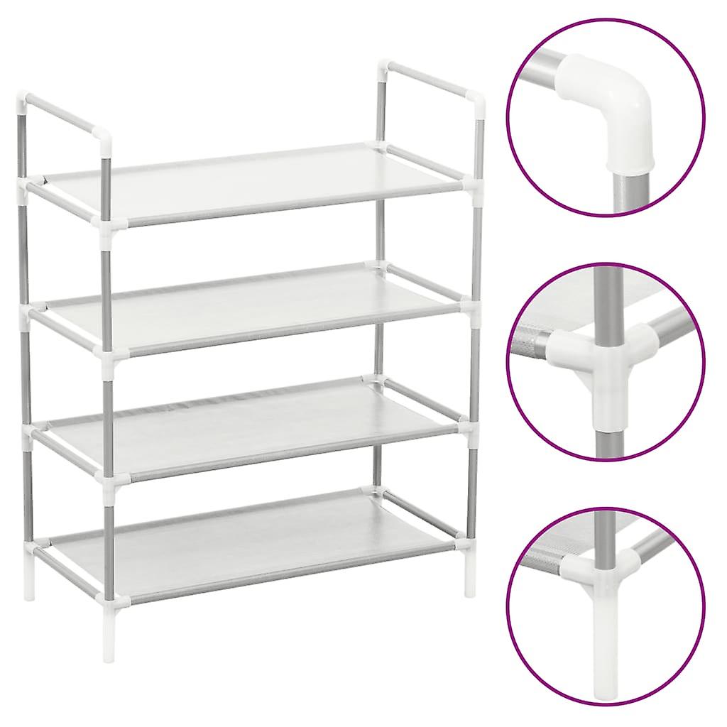 Schuhregal mit 4 Böden Metall und Vliesstoff Silbern