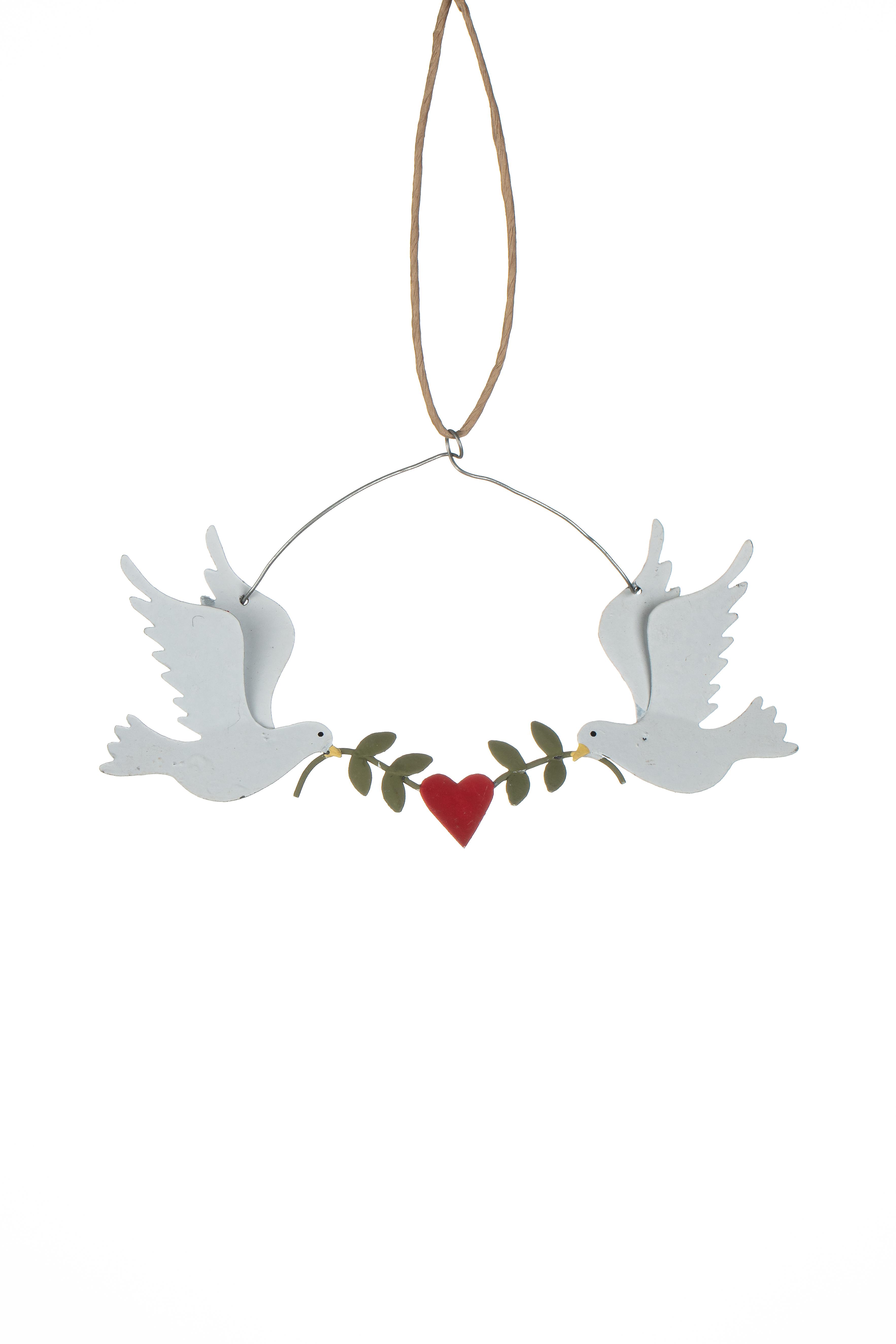Shoeless Joe Metal Doves With Mistletoe Christmas Tree Decoration These Doves Reflect The Absolute Epitome Of Love During The Christmas Season. This Simply Beautiful Metal Decoration Features Two White Doves, Complete With Bright Yellow Beaks And Holding Vines Of Elegant Mistletoe. In The Middle Of The Mistletoe You Will Be Able To See A Vibrant Love Heart Which Brings A Comforting And Heart Warming Feel To The Decoration. The Doves Are Conjoined With A Metal Twine And Finished With Pastoral Rope So That You Can Delegate This Ornament From Your Christmas Tree. A Lovely Gift Idea To Give To Your Partner During The Christmas Season, To Show Them How Much You Love Them Doves And Mistletoe Are Both Common Themes To Include In A Christmas Display, So Why Not Make Your Collection More Classic With This Stunning Decoration. Explore Our All Year Round Christmas Shop And Be Inspired By A Range Of Delightful Decorations.