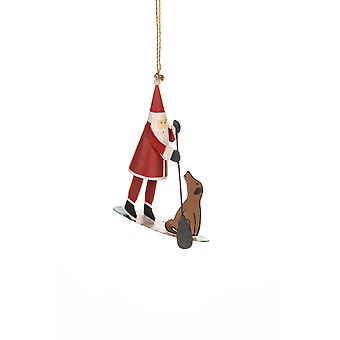Shoeless Joe Metal Santa and Dog on Surfboard Christmas Tree Decoration
