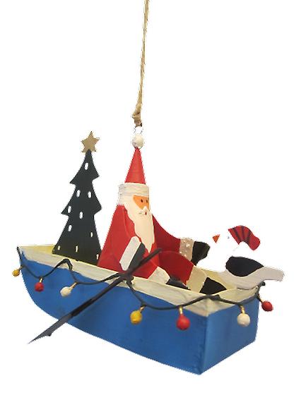 Shoeless Joe Metal Santa in Boat Christmas Tree Decoration