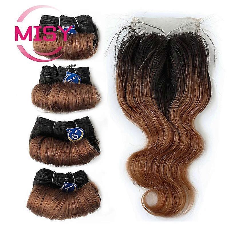 Short Curly Brazilian Human Hair Bundles With 4x1 T Part Closure, Non-remy